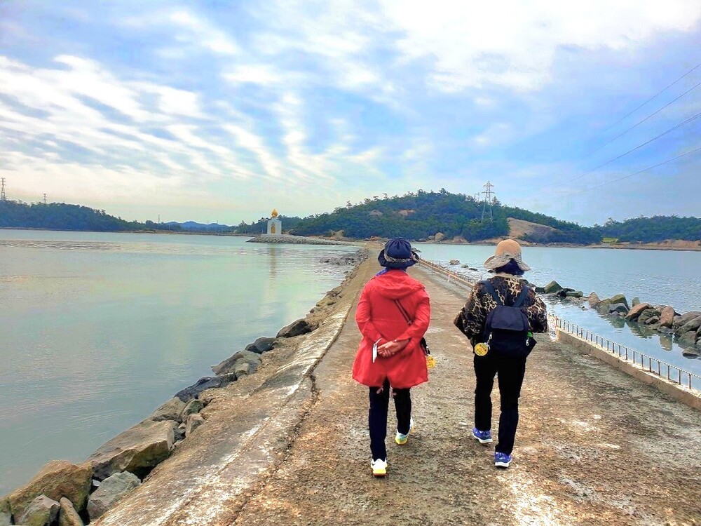 순례길에서 가장 아름다운 때는 노둣길이 물에 잠기기 직전 풍경인데 그 물때 시간에 맞춰 황홀한 풍경속을 걸어보겠습니다.