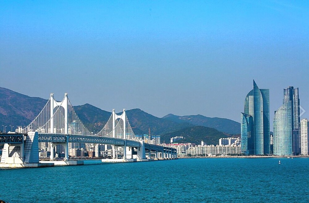 도착지점 동생말에서 바라다 보이는 부산의 랜드마크 광안대교와 마린시티