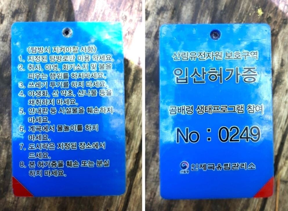 점봉산 생태 관리센터( 해발 750m)에서 예약자 신분증 확인 후 입산 허가증을 받고 출발.