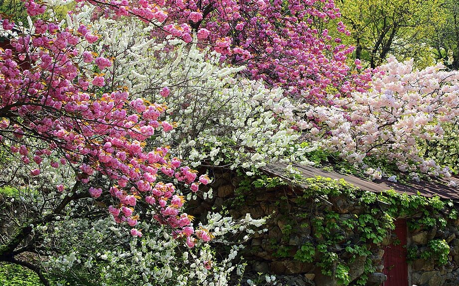 만첩백도 피어 다양한 종류의 벚꽃대궐로 아름다운 사찰 꽃여행