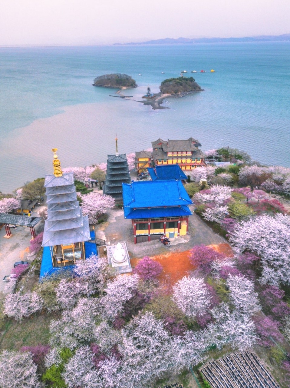 봄이 되면 사찰 주변으로 벚꽃과 다양한 봄꽃들이 만개해사찰과 탑, 그리고 바다가 어우러진마치 한 폭의 그림 같은 풍경을 만들어 냅니다.분홍빛 꽃길 사이로 고즈넉한 사찰을 거닐며서해의 시원한 바다 풍경까지 함께 만날 수 있는 곳입니다.