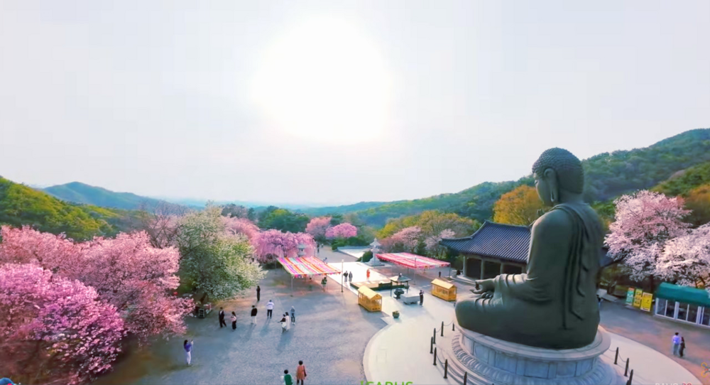 봄이 깊어지는 4월 중순이 되면 사찰 진입로와 경내 곳곳에 심어진 겹벚꽃이 풍성하게 피어나 일반 벚꽃보다 더욱 화사하고 볼륨감 있는 풍경을 만들어냅니다. 특히 분홍빛 꽃송이가 겹겹이 피어난 겹벚꽃이 사찰의 고즈넉한 분위기와 어우러져 한 폭의 그림 같은 봄 풍경을 선사합니다.또한 각원사는 국내 최대 규모의 청동 좌불상이 있는 사찰로도 유명해, 웅장한 불상과 함께 겹벚꽃이 어우러진 장관을 감상할 수 있는 특별한 봄 여행지입니다.