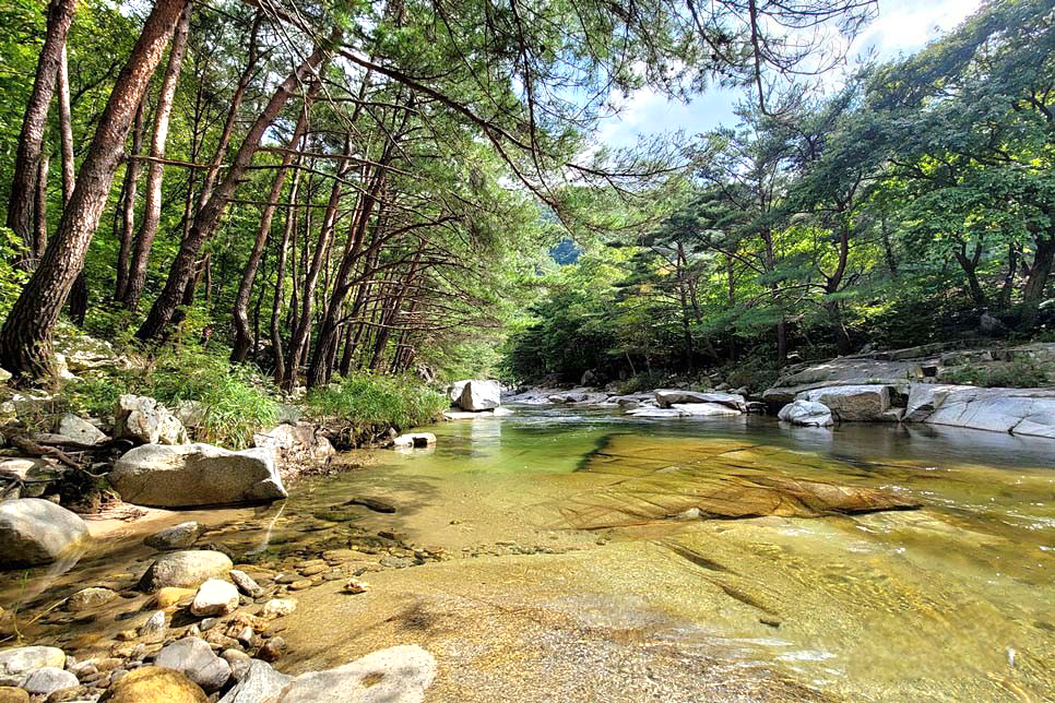 거창의 남덕유산과 금원산 사이로 흐르는 월성계곡.계곡을 따라 이어지는 소나무 숲길과 완만한 오솔길이 어우러져누구나 편안하게 걸을 수 있는 힐링 트레킹 코스입니다.