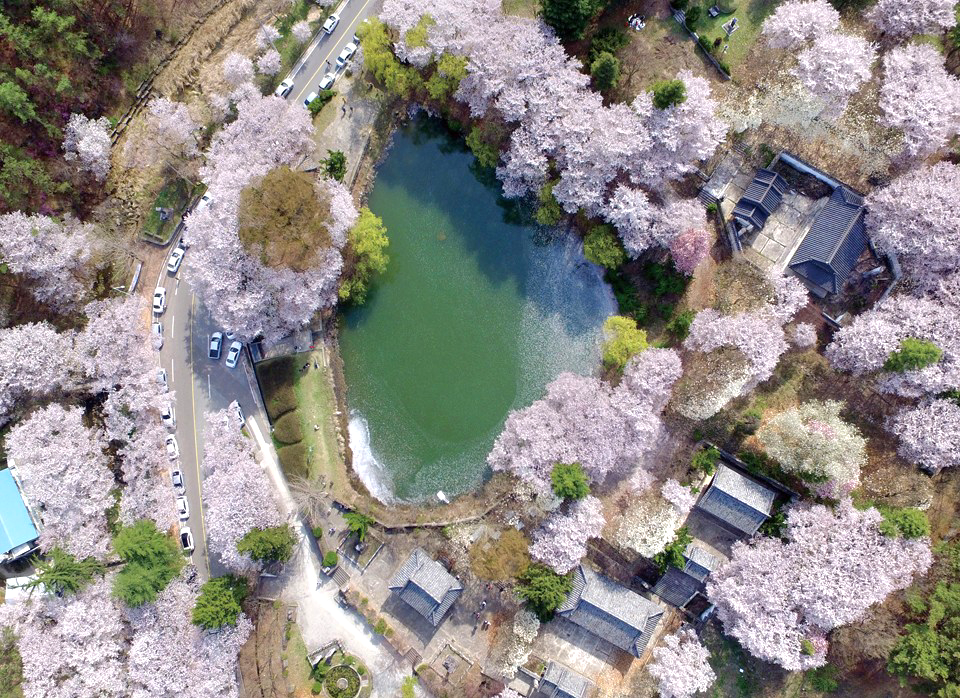특히 능수(수양)벚꽃이 가지를 아래로 드리워 서원 담장과 어우러지며한 폭의 동양화 같은 풍경을 만들어 냅니다.