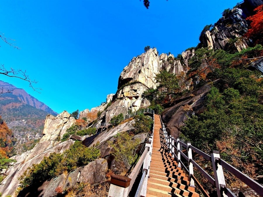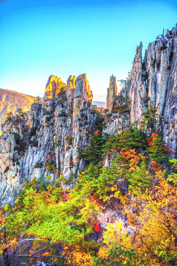 계곡과 폭포를 따라 걷다 보면 마치 도심의 마천루처럼 빽빽하게 솟은 바위 절벽이 눈앞에 펼쳐지며, 시원한 계곡 물소리와 함께 장쾌한 자연의 아름다움을 느낄 수 있습니다.